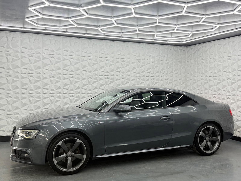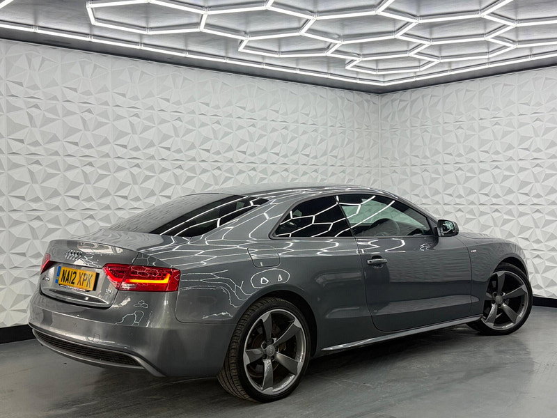 Boasting an exceptionally low mileage for its age, this 2012 Audi A5 TDI Black Edition presents a remarkable opportunity. With only two previous owners and a clear vehicle history check, this car has been well cared for. Its MOT is valid until January 2027, and it received its last service on 7th January 2026 at 93,281 miles. This A5 comes with a 3 month warranty for your peace of mind. Inside, you'll find desirable features such as Audi Exclusive Carpets, Mobile Telephone Preparation with Audi Connect including Bluetooth, an Aluminium Gear Knob, and an Audi Exclusive Leather Covered Steering Wheel, all part of the Convenience Package.