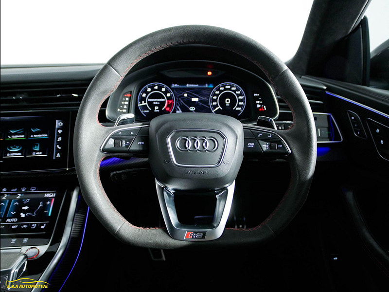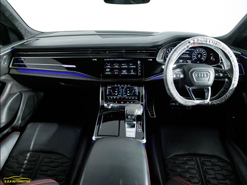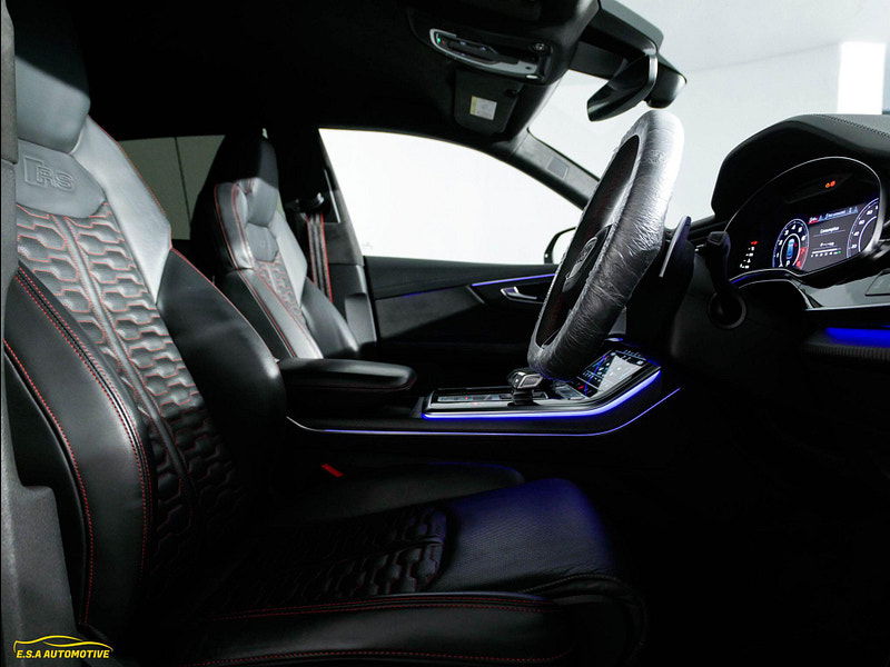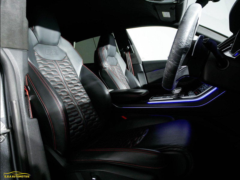 Beautiful Audi RSQ8 finished in Daytona Grey Pearl Effect with a contrasting Full Black/Red Leather interior — a superb example that looks and drives exactly as it should. Only 1 owner from brand new. Comes with a full Audi Main Dealer service history fully up to date. 5 services with 2 Brake fluid changes also. Supplied with a fresh MOT and fresh service and 2 keys, fully prepared and ready for its next owner. Great specification including Heads up Display (HUD), Carbon Ceramic Brakes, Heated & Air-cooled seats, Bang&Olufson sound system, Reverse Camera, Park Assist, Xenon LED Matrix lights, Rear Heated Seats, Black Roof Rails, Carbon Interior, Rear Blinds, Cruise control and limiter, Alcantara Roof lining, Touring Pack plus much more — this vehicle really must be seen to be appreciated. At E.S.A Automotive Ltd, we offer a relaxed, no-pressure buying experience and every vehicle comes with 12 months AA Breakdown Cover and a comprehensive 12-month warranty for added peace of mind, with AA DriveAway Insurance also available to purchase for a small fee (subject to eligibility). Reserve any vehicle with a £99 refundable deposit. We work with a panel of lenders and can consider a wide range of customer circumstances. Finance subject to status and lender approval. We are Trading Standards Approved, committed to AA Cars Standards, and proud award winners with 100% positive verified reviews, including AutoTrader Retailers Customer Choice Award 2020, Yorkshire Prestige Award Car Dealer of the Year 2021/22, and South Yorkshire Car/Van Dealer of the Year 2023, and we have been Highly Rated by AutoTrader from 2019–2025 — contact our friendly team today to book a viewing or reserve.