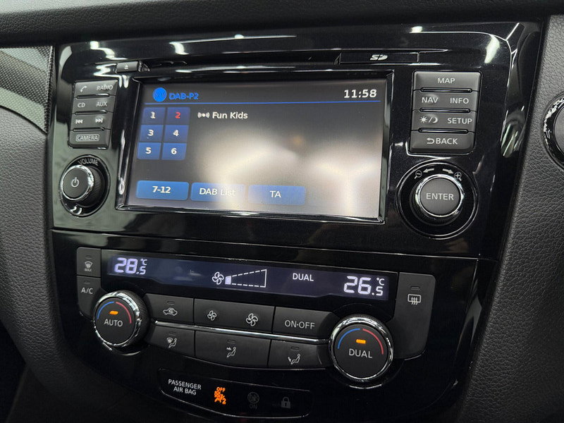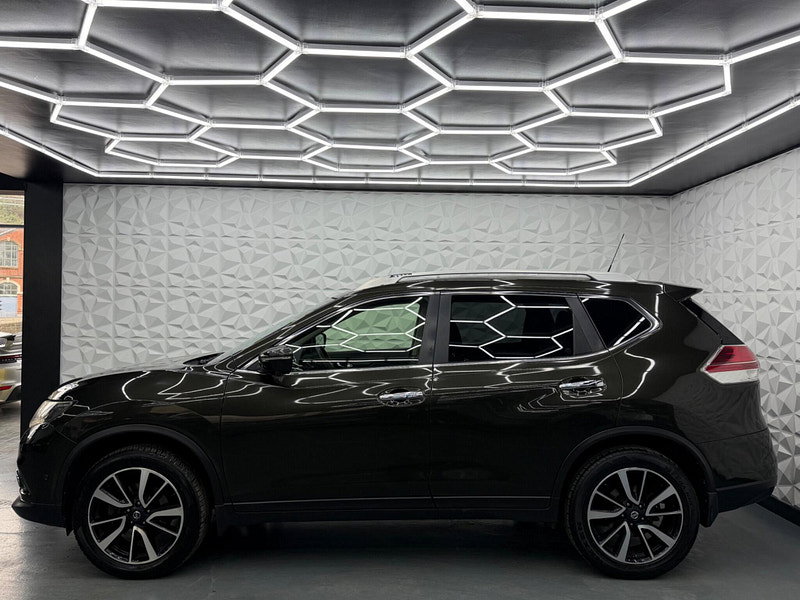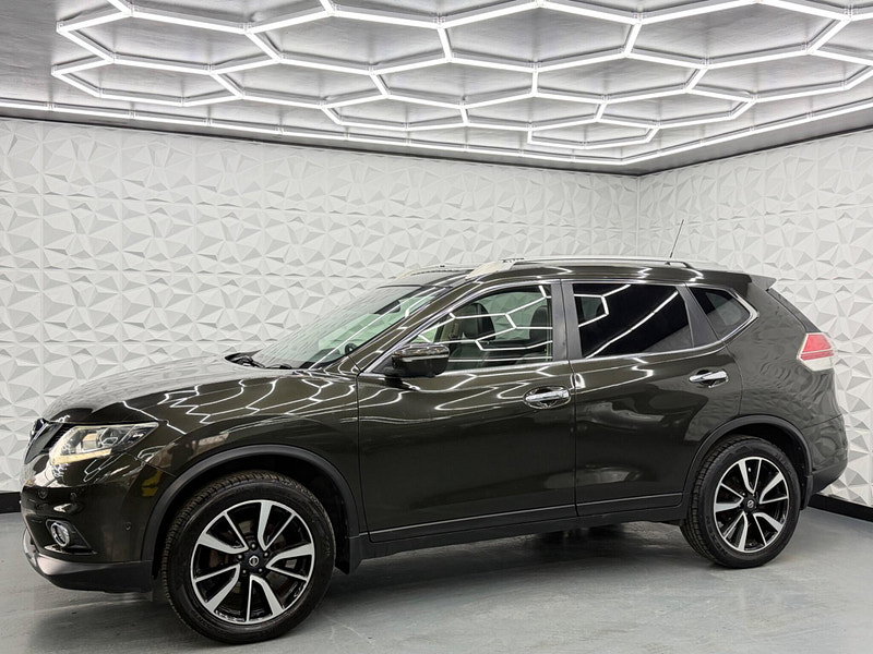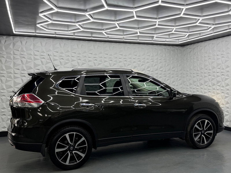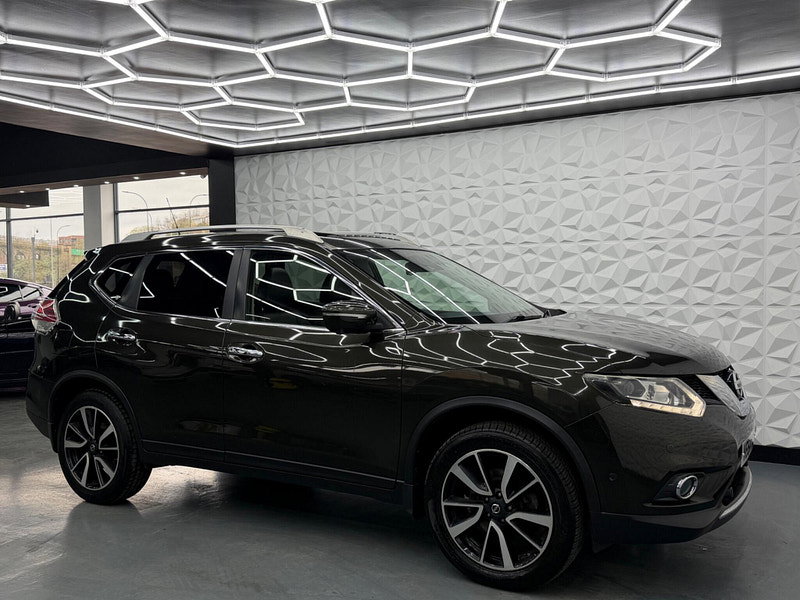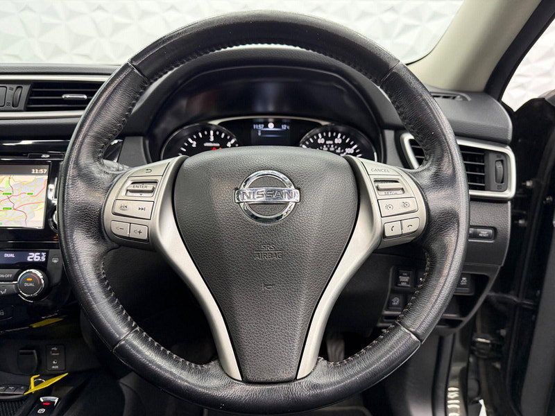 Boasting an MOT valid until March 2027 and a full service history, this 2014 Nissan X-Trail dCi Tekna presents a compelling proposition. This Tekna trim model features a 1.6 litre diesel engine and comes with a 3 month warranty for your peace of mind. Its provenance is further assured with a clear vehicle history check and a last service completed at 83377 miles on 2026-03-16, which is notably low mileage for its age. Inside, you'll find luxurious black leather upholstery, a leather gear knob, and the convenience of a 7 seat upgrade. The Around View Monitor provides a 360 degree bird's eye view, aiding parking with its 360 degree camera system, while dual zone climate control ensures comfort for all occupants.