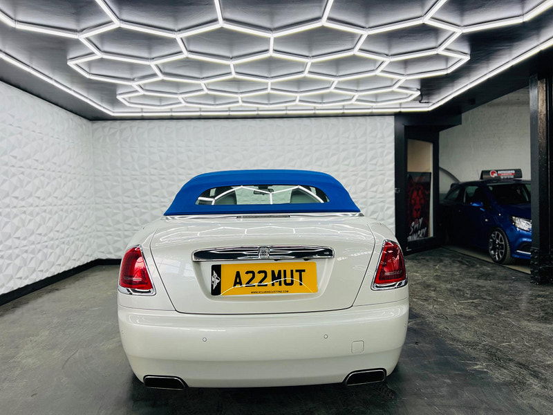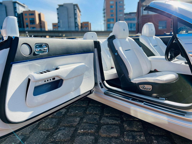 WE ARE PROUD TO OFFER This stunning 2017 (67) Rolls Royce Dawn Limited Edition Inspired By Fashion Edition arrived in our showroom recently finished in Bespoke Andulcian White Pearl with contrasting Colbalto Blue elements through the interior and exterior. Specification includes; Head-up Display, 21" 7 Spoke Polished Alloy Wheels, 360 Camera, Front and Rear Parking Sensors, Soft Close Doors, Dynamic Cruise Control, 4 Zone Climate Control, Heated Electric Front Seats, Premium Audio, Heated Rear Seats and, Apple/Android Connect and more! HERE AT E.S.A AUTOMOTIVE LTD WE OFFER AS STANDARD A 12 MONTHS AA BREAKDOWN COVER, 5 DAY DRIVEAWAY INSURANCE & A COMPREHENSIVE 3 MONTHS WARRANTY ON ALL VEHICLES. RESERVE ANY VEHICLE WITH A £100 REFUNDABLE DEPOSIT. WE HAVE A HUGE PANEL OF LENDERS FOR GOOD&BAD FINANCE SO WHY NOT CALL US TODAY. WE ARE COMMITED TO THE AA CARS STANDARDS & ALSO TRADING STANDARDS APPROVED. WE ARE THE PROUD WINNERS OF THE AUTOTRADER RETAILERS CUSTOMER CHOICE AWARD WINNER FOR 2020, ALSO THE PROUD WINNERS OF THE 2021/22 CAR DEALER OF THE YEAR (YORKSHIRE) PRESTIGE AWARD AND FINALLY WE HAVE WON THE CAR/VAN DEALER OF THE YEAR (SOUTH YORKSHIRE) 2023. WITH 100 PERCENT POSITIVE VERIFIED REVIEWS & SELECTED HIGHLY RATED BY AUTOTRADER 2019,20,21,22&2023. WE TAKE PRIDE IN NOT JUST SELLING CARS BUT AN AMAZING AFTERCARE SERVICE. CALL THE TEAM TODAY TO START YOUR CAR BUYING JOURNEY.