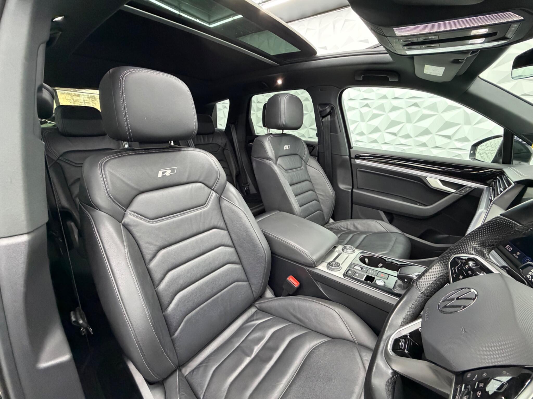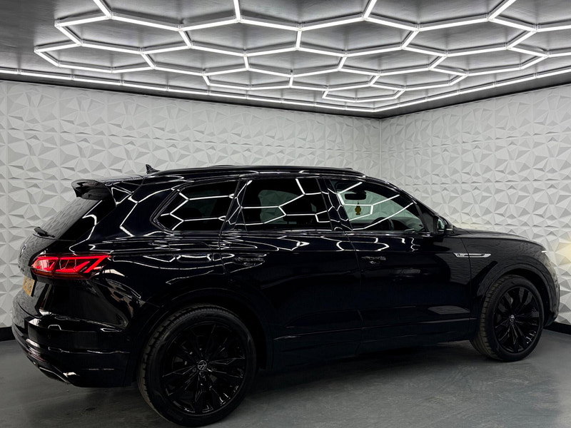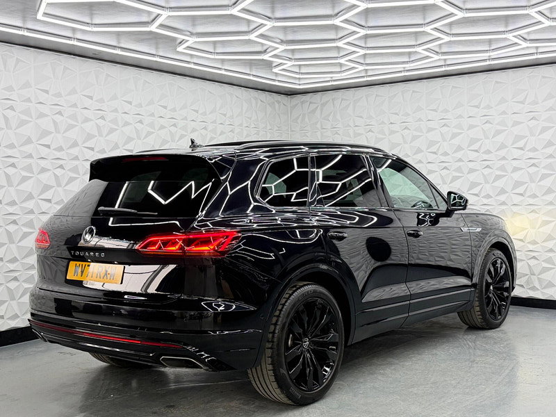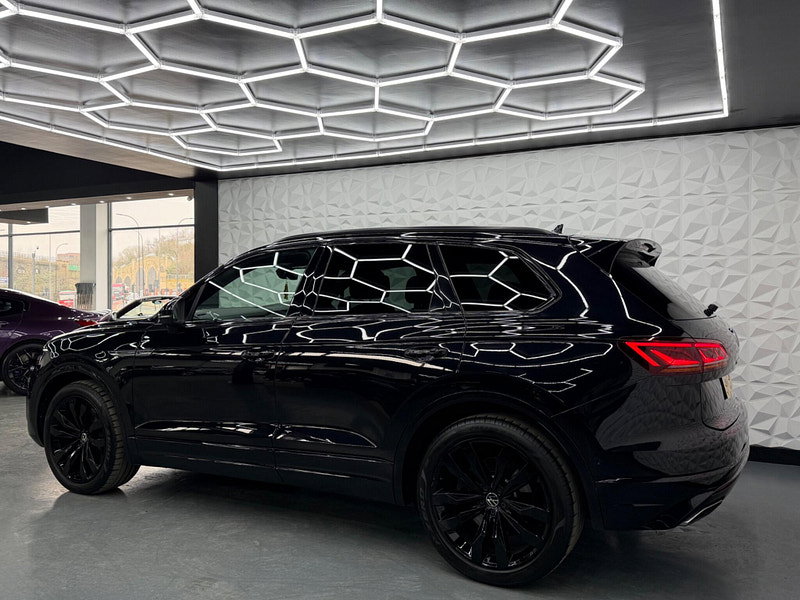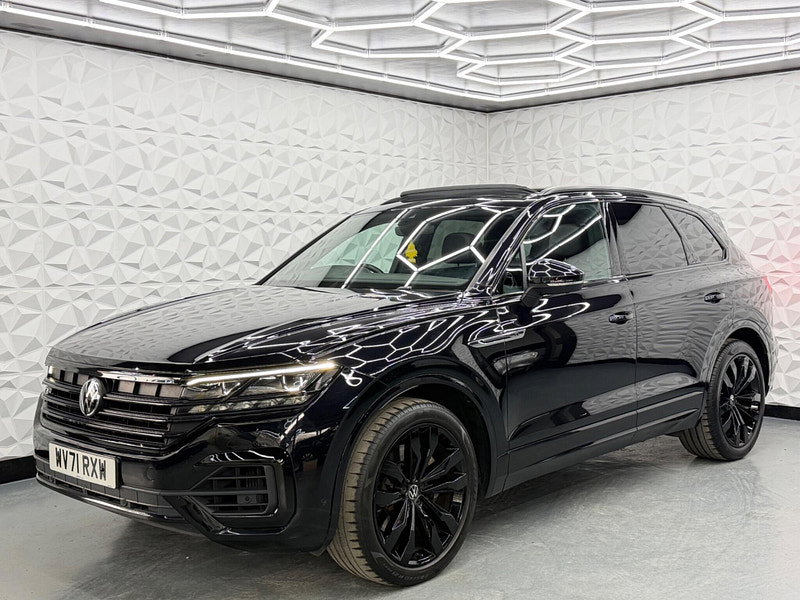 Fresh MOT valid until March 2027 and a clear vehicle history check, this 2021 Volkswagen Touareg TSI V6 Black Edition presents a compelling proposition. Powered by a robust 3.0 litre petrol engine and featuring Four Wheel Drive, this Euro 6 compliant model offers impressive performance with a 0-62mph acceleration time of just 5.9 seconds. The Black Edition trim enhances its appeal with IQ Light LED Premium Matrix Beam Headlights offering intelligent light modes, dynamic indicators, and dynamic rear tail lights, alongside convenient Keyless Entry and Automatic Headlight Control. Inside, you'll find a Storage Compartment with Wireless Phone Charging and a Memory Pack for the seats, ensuring comfort and convenience. Other specs include Pan Roof, 360 Cameras, Hands Free Tailgate, Secondary Immobiliser, Air Suspension, 4 Zone Climate Control, Heated Steering Wheel & Seats.